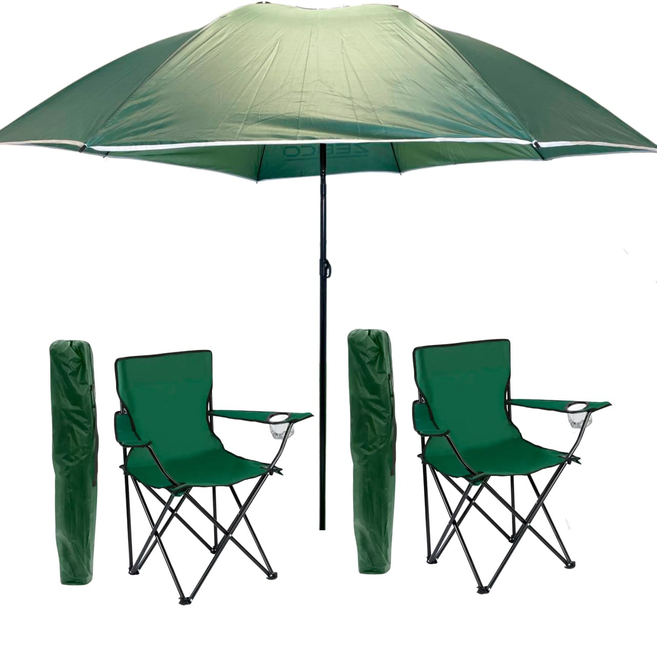 Весь набір розроблено для максимальної зручності. Крісла розкладаються одним рухом, а велика парасоля швидко встановлюється та створює надійний захист від сонця. Забудьте про незручності — ваша зона комфорту завжди з вами.