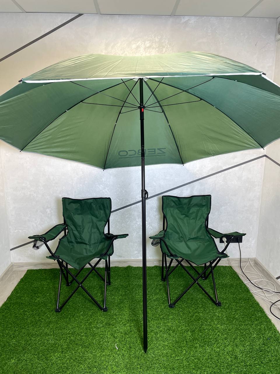 Гарне рішення для будь-якого відпочинку на свіжому повітрі: від пікніка в парку та риболовлі до комфортного дня на пляжі чи дачі. Набір створює зручне місце для двох, захищене від сонця.